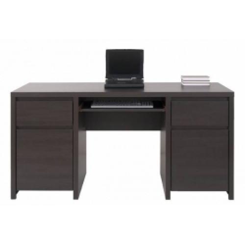 Elegantný stolový model, vhodný do kancelárie i domácej pracovne, s praktickými zásuvkami na dokumenty a výsuvom na klávesnicu.