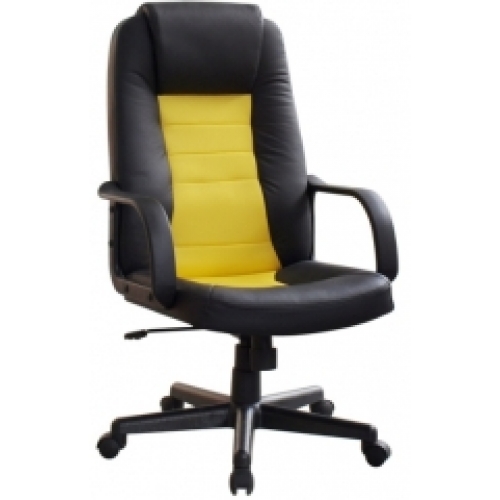 Toto kancelárske kreslo spája jednoduchosť, komfort a moderný dizajn. Kožený povrch pôsobí elegantne a ľahko sa udržiava, zatiaľ čo žltý prvok dodáva kreslu originálny a svieži vzhľad. Vďaka kolieskam a otočnému mechanizmu zabezpečuje pohodlný pohyb pri práci. Ideálne pre vašu kanceláriu alebo domácu pracovňu.