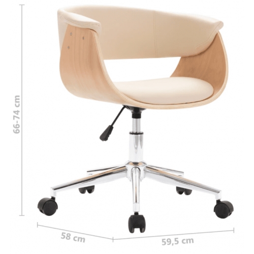 Otočná kancelárska stolička krémová ohýbané drevo a umelá koža